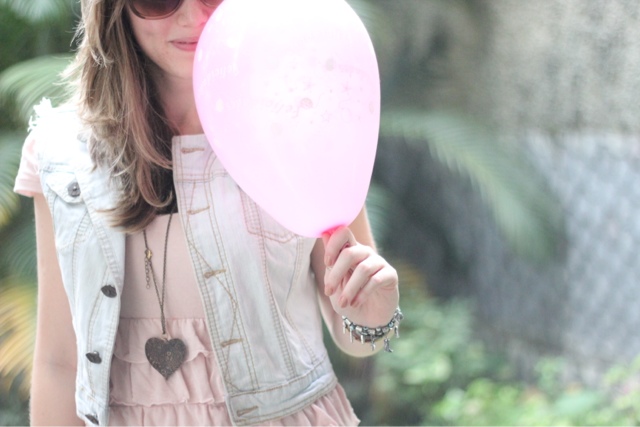 E pra finalizar, o look de domingo festivo! Com direito a balões para comemorar esses 6 meses de dieta fashion bem sucedida! E eu nem tinha usado esse vestidinho por aqui ainda, viu?! Nada melhor do que comemorar meses sem compras com uma peça "nova" que já é velha de guerra!